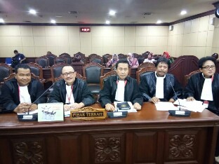 Suasana yang agak menegang mulai cair saat Ketua Majelis Hakim Mahkamah Konstitusi Aswanto meminta Kuasa Hukum Pihak Terkait Paslon Nomor Urut 1 untuk membacakan keterangan Pembelaannya.