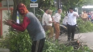 Foto : Antisipasi Pohon Tumbang, Puluhan Pohon Tua Depan  Kantor Kecamatan Bekasi Selatan Ditebang