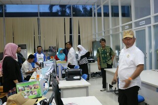 Bekasi -Jumat, 30 Nopember 2018 Wali Kota Bekasi, Dr. Rahmat Effendi lakukan sidak ke kantor Dinas Komunikasi, Informatika, Statistik dan Persandian (Diskominfostandi) di dampingi oleh Kepala Diskominfostandi yang baru saja dilantik, Encu Hermana.