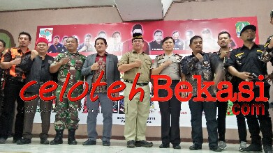 Bekasi – Sebanyak 11 organisasi masyarakat (ormas) yang ada di Bekasi Utara , melakukan Deklarasi Pemilu Damai 2019, di Gedung Cabang PGRI, Jalan Kaliabang, Bekasi Utara, Minggu (17/03/2019).