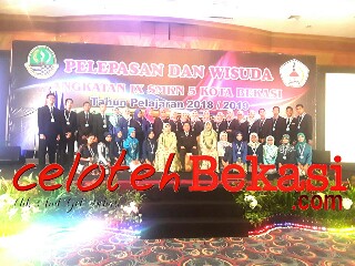 Bekasi – SMKN 5 Kota Bekasi menggelar wisuda atau pelepasan bagi siswa-siswi kelas XII angkatan IX tahun pelajaran 2018-2019. Wisuda kali ini dilangsungkan di Hotel Horizon dengan mengusung tema ‘Mengukir Kenangan Mencetak Lulusan yang Unggul Kompetitif dan berkarakter’.