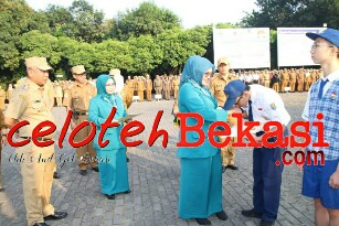 Wali Kota Bekasi, Dr. Rahmat Effendi hadir sebagai pembina apel dan juga dihadiri Wakil Wali Kota Bekasi, Tri Adhianto Tjahyono, Ketua TP PKK Kota Bekasi, Gunarti Rahmat Effendi, Wakil Ketua TP PKK Kota Bekasi, Wiwiek Hargono Tri Adhianto, Sekretaris Daerah Kota Bekasi, Reny Hendrawati dan jajaran ASN dan Non ASN Pemerintah Kota Bekasi.