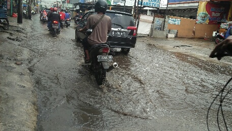 Dari pantauan Celoteh Bekasi dilapangan, Lokasi genangan air sepanjang 12 Meter belokasi dijalan raya kali abang tetap didepan GangbDamai, tak jauh dari kantor Kecamatan Bekasi Utara.