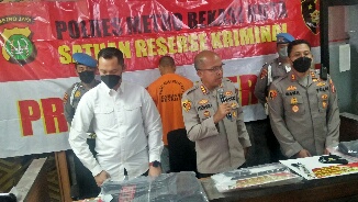 Kota Bekasi – Pengungkapan Kasus yang sempat viral di sosial media bertepatan pada Hari Bhyangkara dengan cepat di tangani Polres Metro Bekasi Kota, dalam perskon Kapolres Metro Bekasi Kota Kombes Pol Hengki mengatakan,Pelaku dengan menggunakan rompi bertuliskan polisi datang kerumah korban pada Kamis 30 Juni sekitar pukul 18.00 wib Jl Cipete raya Babakan Pete RT 005 RW 01 Kel. Mustikasari kec. Mustikajaya kota Bekasi. Pelaku berdalih bahwa suami korban terlibat dalam peredaran gelap narkoba.