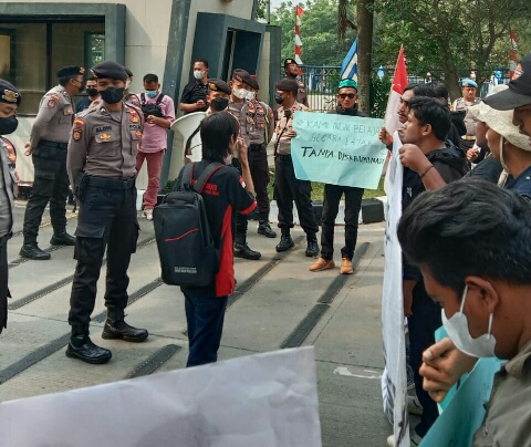 depan Kantor Pemkab Bekasi mewakili para siswa sekolah yang tidak mendapatkan keadilan serta meneruskan amanat UUD, UU dan Peraturan lainnya guna menuntut PJ Bupati Bekasi.
