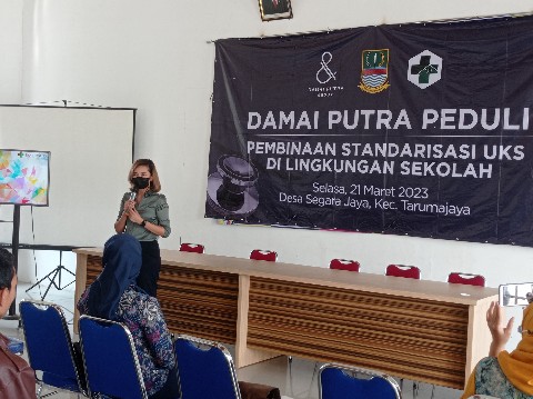 Kegiatan yang berlangsung pada hari Selasa,(21/03/03) di Aula Kepala Desa Segara Jaya adalah kolaborasi antara Damai Putra Group dengan Kecamatan Tarumajaya dan Kelurahan Segara Jaya. Program CSR Damai Putra Peduli meberikqn pembinaan terkait Standarisasi Unit Kesehatan Sekolah (UKS) kepada para Kepala Sekolah dan Guru di Kecamatan Tarumajaya yang disampaikan oleh dr. Karina, Sp. PD selaku dokter Penyakit Dalam dari Eka Hospital dan drg. Nurhayati selaku dokter gigi Usaha Kesehatan Sekolah.