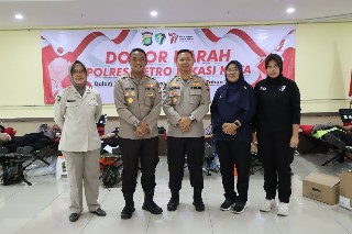 Kapolres Metro Bekasi Kota Kombes Pol Dani Hamdani, S.I.K, M.P.M melalui Kasie Humas Kompol Erna Ruswing Andari menyampaikan bahwa jelang HUT Bhayangkara ke 77, Polres Metro Bekasi Kota bekerjasama dengan dokkes Polres menggelar bakti kesehatan dengan melakukan donor darah