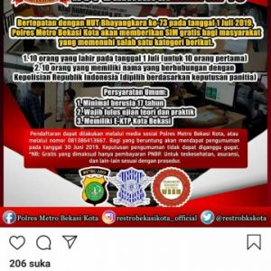Bekasi – Polres Metro Bekasi Kota adakan pembuatan SIM gratis kepada masyarakat